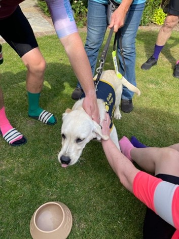 Soon after, a small delegation from the esteemed Guide Dogs for the Blind charity graced us with their presence, accompanied by three of the most gorgeous dogs, which Martin had been liaising with Guide Dogs to make this visit happen. There were two puppies and a retired guide dog, with handlers, who enjoyed our hospitality and also chatted to all of the team, and were happy to inform us of what the charity is all about, and their presence certainly added to the occasion. The younger puppy was 4 months old, so in training, and very delightful. The older puppy had meningitis a while back, which his handlers nursed him through to recovery, but after that, sadly, he was not deemed fit enough to move onto be a full guide dog, so he is now their pet. The senior black guide dog retired early, as her owner got dementia and it is difficult to hand the dog over to another blind person and be able to strike the same rapport.