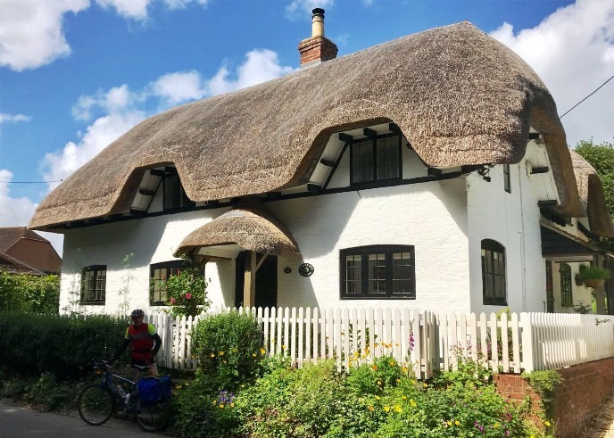But the Aldermaston of the mid 20th century was another age and we were still travelling back in time to a now forgotten era. A few miles past Aldermaston we left the towpath for the next bit of our afternoon cycle ride, because NCR Route 4 continued , on nice smooth tarmac along some country lanes thru old world England , past thatched cottages and old pubs to our overnight stop at Hungerford.