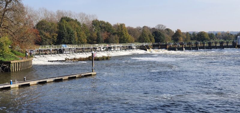 We crossed the river at Teddington Lock where the bridge is narrow and prohibits riding your bike. On the plus side, you do get a lovely view of the Teddington Lock.