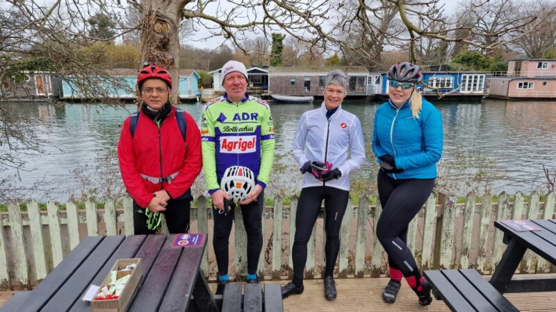 Mark took us to his favourite tea stop at East Molesey Cricket Club which is now called Miss Polly Riverside Cafe. Good food at a price but you can keep an eye out on your precious bike while the green wellied Surrey folk walk along the Thamespath.