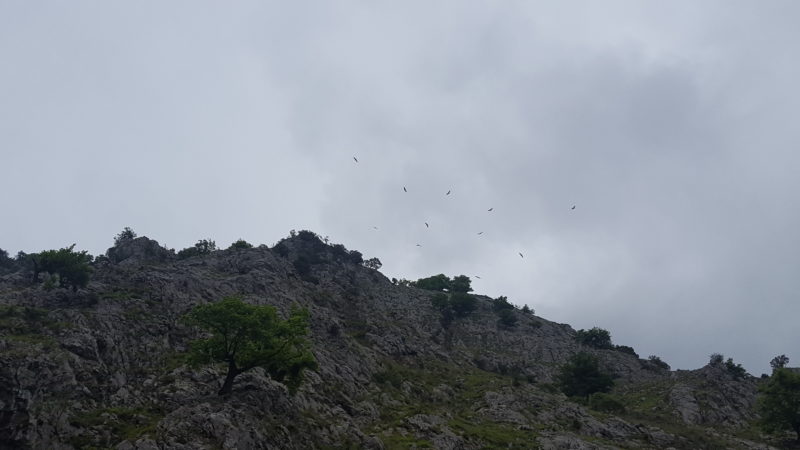 We could see the big griffon vultures hovering at the top and I felt the urge to whoop with joy that we didn’t have to cycle up and around and miss this stunning route. The road surface was smooth and there was not a hill in sight – every metre of that 16K gorge is filled with the wonders of nature.