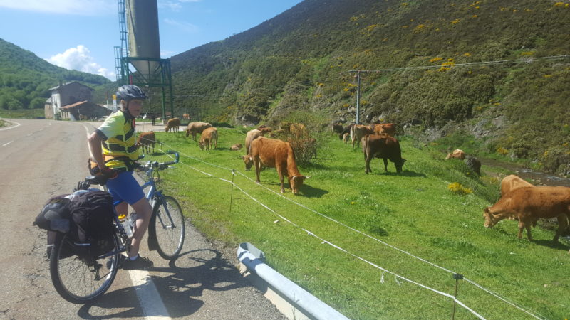 After a flurry of activity we were off the ship at Santander and on our way to the train station. I won’t mention who was told off for trying to jump the queue at passport control! We just missed a train so went to a supermercado for some food supplies before getting the next train out to Virgen de la Sal. From there, a 5K ride in the dark to a superb farmhouse conversion for a wonderful night’s stay!