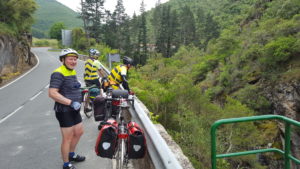 The 14km climb to the lakes at Covadonga features almost every year in the Vuelta de Espana. Although the average gradient less than 7%, there several sections exceeding 10% so it is a tough climb. Once again, John went ahead as the three of us struggled up the long steep climb. I realised that I had rust and bits of bearings running out of my front fork so my headset kept seizing up. Eventually I packed it with Vaseline which saw me through the rest of the trip.
