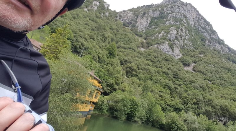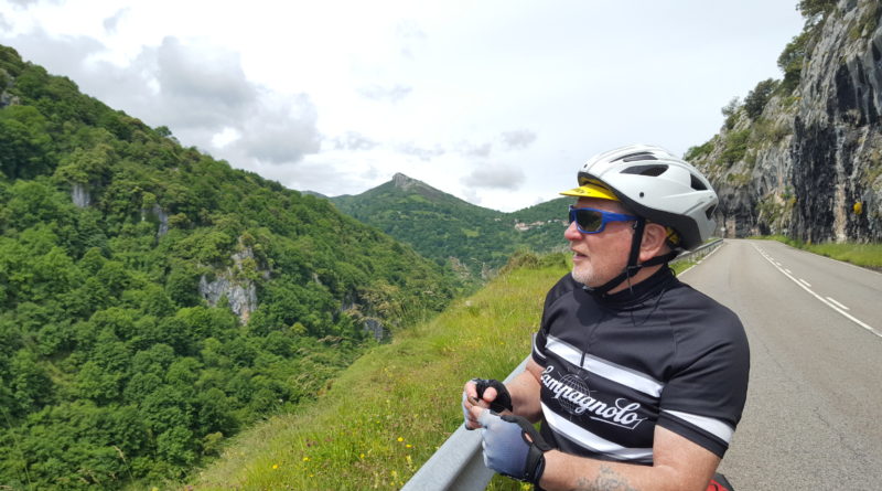 All good things come to an end and eventually we exited the gorge and found our way to the overnight accommodation in Potes where we waited for Des. The unlucky Des was not answering his phone or text messages so I guessed that he was likely to be on his bike and eventually the great man arrived and regaled us with tales of woe: