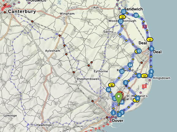 Dover has something else of interest. It is the start of the longest cycle route in the UK. National Cycle Route 1 starts at Dover and continues for 1,264 miles to end in Scotland, north of Aberdeen and Inverness. But we were not going that far!
