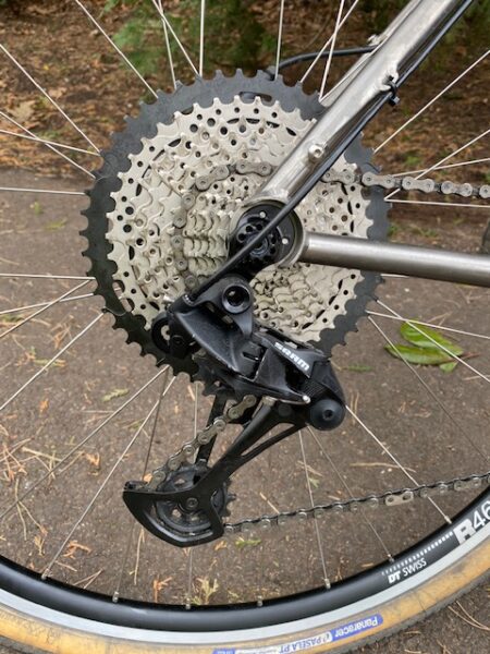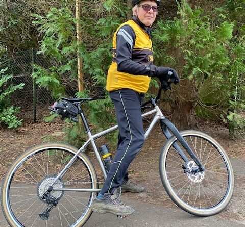 Bob’s new bike is a Planet X Titanium Adventure bike. A new concept for Gravel Bikes from the US of A. As you can see from the latest Sram, 12 speed, single chain ring set up, with super low gears, it was intended for adventures something like this! But of course in the Americas, the west coast chain of mountain trails from Rockies to Andes.