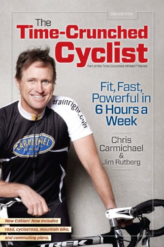 Like the training programmes recommended by Joe Friel, the emphasis is on high intensity training plus weight training. The title “Time Crunched” is because Chris found when training the top U.S pro-cyclists, that the European quotes by Eddy Merckx and others, of “Get the miles in,” was having little effect relative to the many hours in the saddle. As the book cover says, Chris proved that we can get race fit in 6 hours a week instead of having to spend 6 hours a day for 6 days a week.