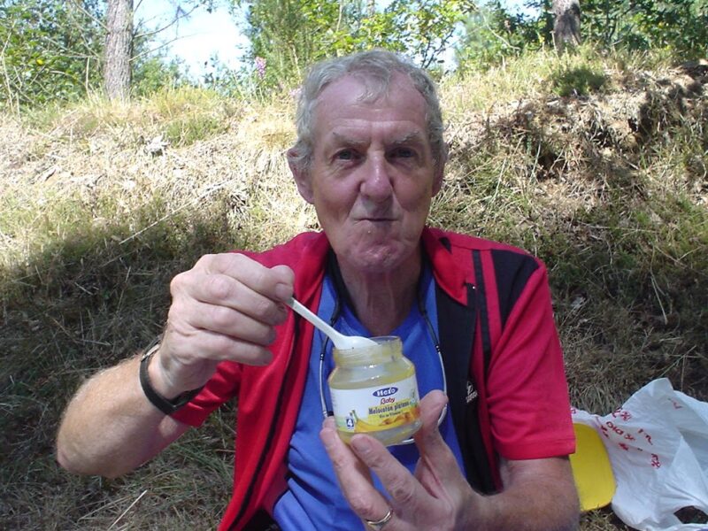 Next morning, we had no alternative but to continue along the busy N634, which was blessed with a sort of cycle lane (actually built for local farmer’s donkey carts!). Ten miles took us to Baamonde where we headed due west and a new M-way siphoned off most of the traffic. At Guitiriz we turned south on to a minor road (AC 232, not shown on our small scale map), but shortly before doing so we stopped for a road side picnic lunch. Dr Irena allowed me a treat, a jar of baby food, beef and rice. Yum, yum! Unfortunately it played havoc with my tum tum!