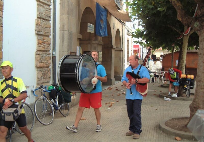 Luckily the terrain was now fairly flat all the way to Ribadeo, except for a detour down into another cove to see the small and picturesque fishing port at Tapia de Casariego.  Time for photos in the scenic harbour area, then back up into town for a visit to the open air market where we were serenaded by bag pipers whilst we surveyed the offerings of hams, cheese, wines and cider, plus other local produce. Like the Scots and Irish, bag pipes are the traditional instrument used by Asturian and Galacian folk musicians.