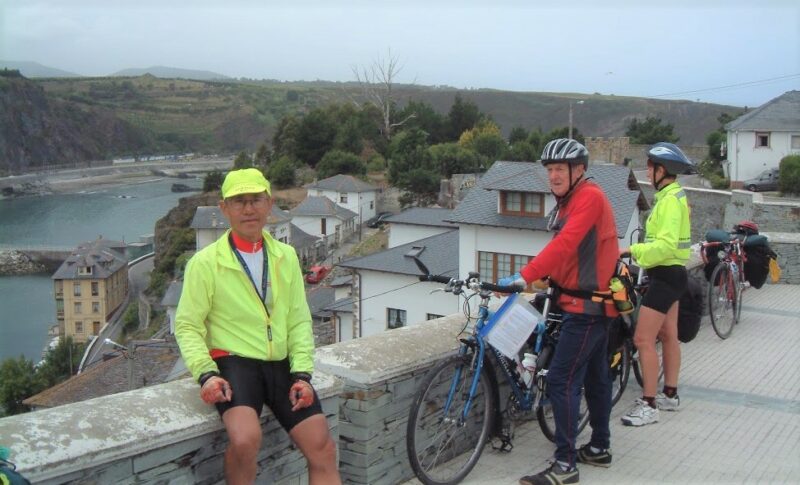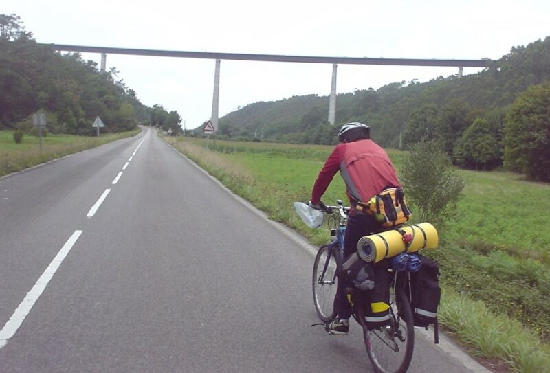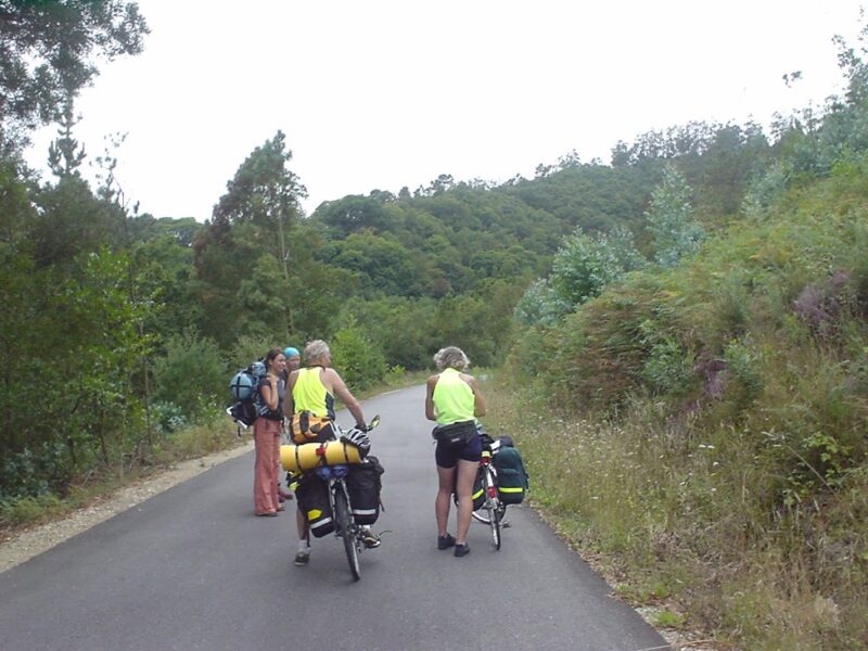 In Spain the regional governments are semi autonomous, thus the Spanish refer not to Spain, but the Spains, plural.  Crossing the River Deo we passed from one Spain, Asturia, into another Spain, Galicia.  Having covered about 200 miles, mainly following the coast, it was now time to head inland and cross the mountain range.  This starts in the east as the Pyrenees and continues in an unbroken chain through the Cantabrian Mountains into Portugal at it’s western end.  I wanted to get off the main road and follow a quieter alternative into the hinterland.  The Galicians have their own language, Galigan, so when I stopped and asked two elderly Galicians the way to Vilela in my Anglicised, Castilian Spanish, I was met with blank looks.  Ewa faired a bit better with some younger Galicians, brought up in the multi-cultural age of T.V!   However it was 17k, mostly uphill, before we saw the first road sign confirming that we were, in fact, on the correct road, the LU 133.  A quiet, scenic road, the best part of which was a long, long, long, down hill ride with fast sweeping bends through a pine forest.  A real adrenalin rush!