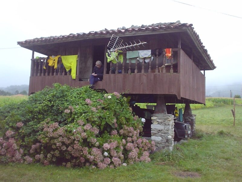 After our night’s sleep in the barn, or horreos to the locals, we started day 6 in good spirits, even though we still had damp clothing and wet shoes from the previous day’s rain.  We continued following the old coast road, the original Roman road, the Agrippan  Way, which does not appear on today’s small scale maps.  Its tortuous windings were an attempt to avoid the worst of the hills, for Spain is second only to Switzerland in having the highest average altitude in Europe.  However, since the marching feet of Roman legions and the later, plodding medieval pilgrims passed this way, the artic lorry has necessitated a dramatic change to this wooded landscape.  M-ways and concrete spans, linking hill top to hill top, which we could only view from below on the valley floors.