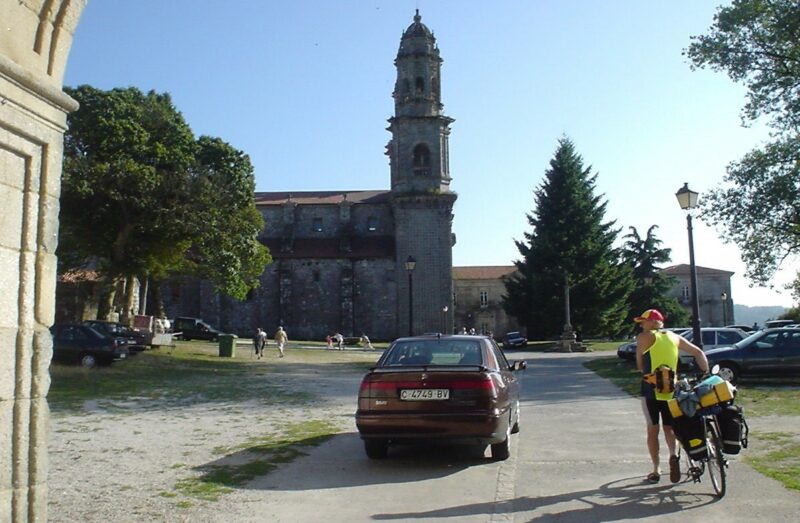 The monastery complex was large and extensive and the photo does not do it justice.  Here we are passing through the entrance gateway, going towards the church with the monastery quarters beyond. Note the size of our panniers.  But then a pilgrimage is supposed to be a form of penance, and cycling beats saying a dozen Hail Marys!