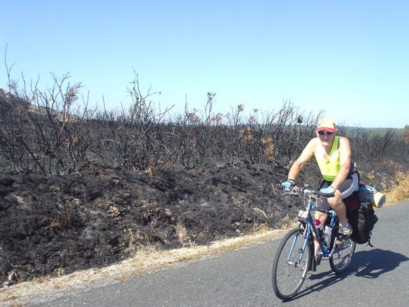 About 10 miles along the AC 232 we came to an area of smouldering and burnt out, woodland and heath, what remained after a forest fire.  Had we come earlier the fire would have made the road impassable and resulted in a very lengthy detour!