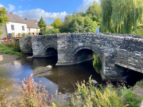 And below is me crossing over the River Clun via it’s pack horse bridge, still standing in spite of the weight of 21st century HGVs!