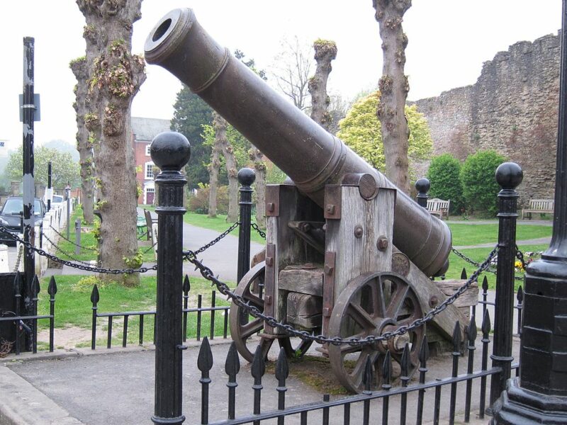Fortunately the rain had stopped when we left the cafe and the sun had come out. Ludlow 18 miles from Clun, is a very impressive, historic town with much to see, so we took a walk around. We started with a visit to it’s impressive Norman castle, the entrance to which is guarded by this imposing weapon of war. Apt now perhaps in view of the ongoing war in Ukraine, this Russian cannon had been captured during the Siege of Sevastopol during the Crimean War.