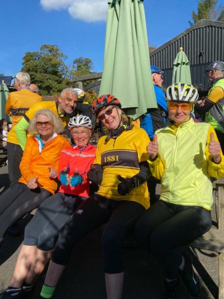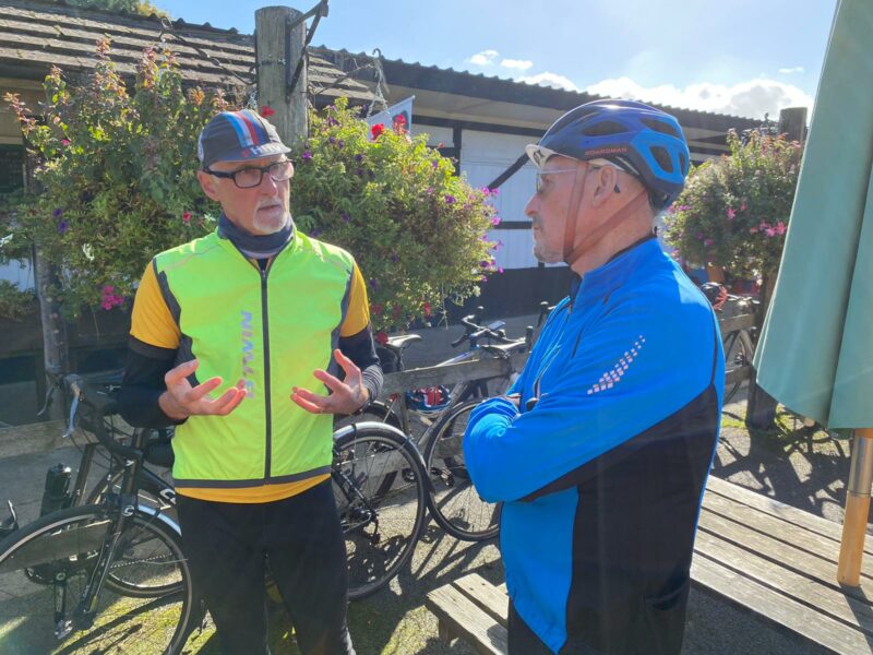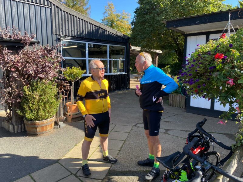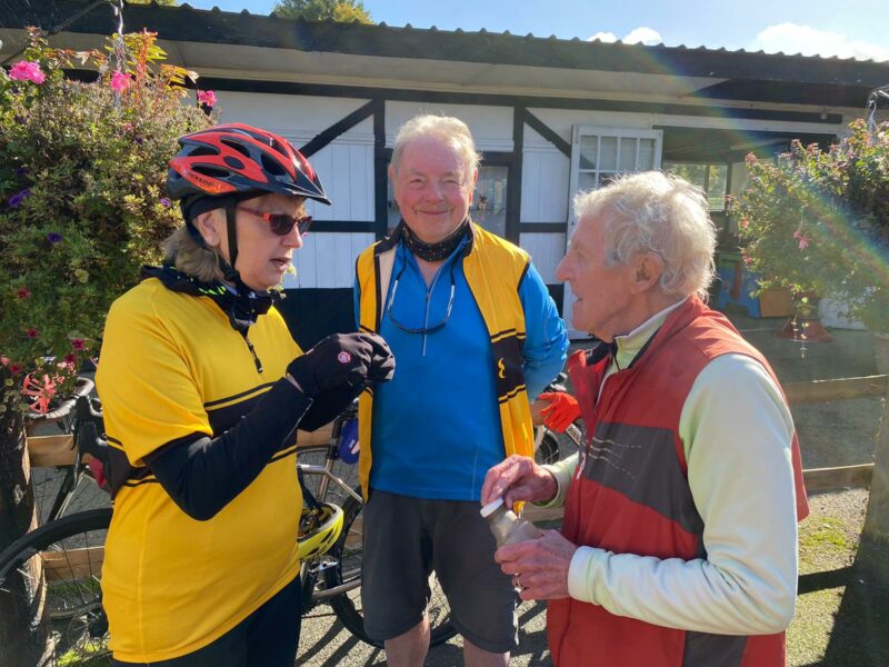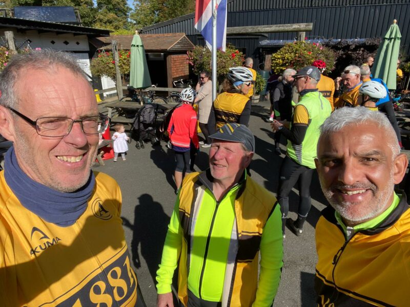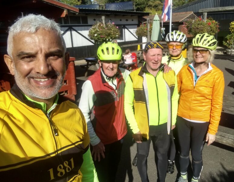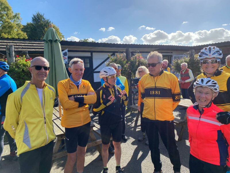 I don’t know how many Anerley riders, in total, made it to the tea stop venue, but it must have been about 20, so there was a bit of queuing up to get served. Fortunately it was a sunny day so we were able to sit out side to enjoy the company – and the warm sun shine!