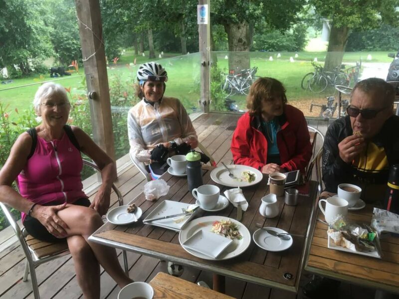 The club was able to commandeer the covered patio area of the cafe and were soon tucking into bacon sandwiches, paninis, cakes and the like.