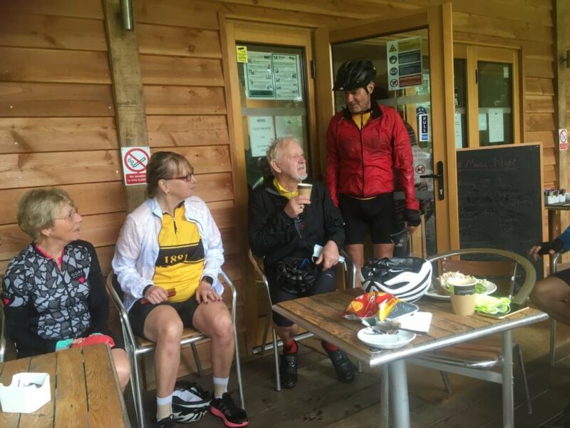 After 16 months of enforced separation, Vince’s suggested that all of the Tuesday groups should meet together at a tea stop. The date was set for 27 July and 28 riders made their way in 4 groups to Henfold Lakes, roughly 18 miles there. And of course back!