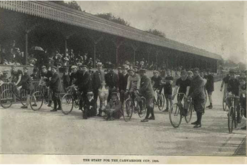 Last month, inspired by a photo that Capt. Mark had found on the internet, I wrote an item about the Club’s Appletree Trophy. However our most valuable trophy was the Carwardine Cup which was awarded to the winner of a 100 mile race held annually at Crystal Palace cycle track.