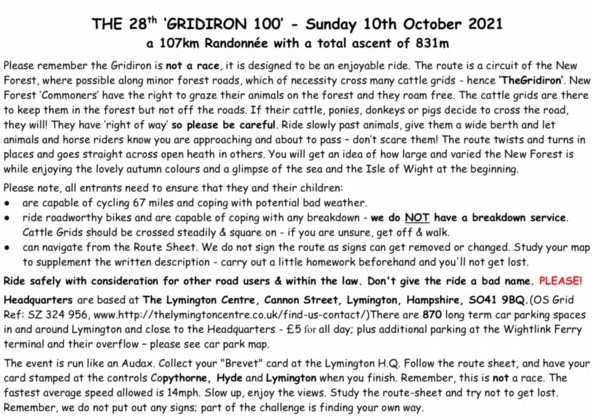 Named after the many cattle grids throughout the New Forest, ‘The Gridiron 100’ is a 100k on-road Cycle Randonnée (French for ramble!). We had no idea of what to expect, only what this information sheet told us.