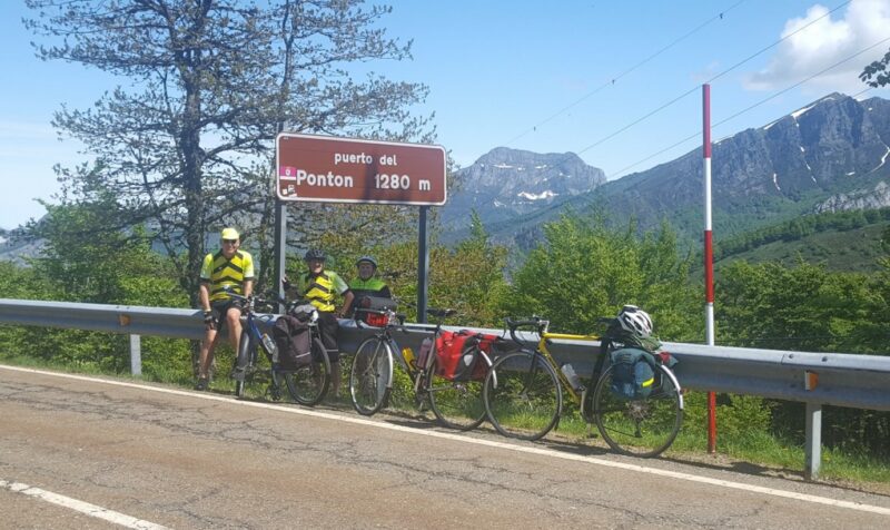On our Spanish adventure, due to minimal mileage on the bike during the winter and early Spring, I just was not fit enough. I really suffered on the first long climb loaded down with our luggage. This was up to a mountain pass at an altitude of 5,270 feet. The higher we climbed, the colder and wetter it got. What a relief it was, after 28 kilometres of climbing, to reach this sign!