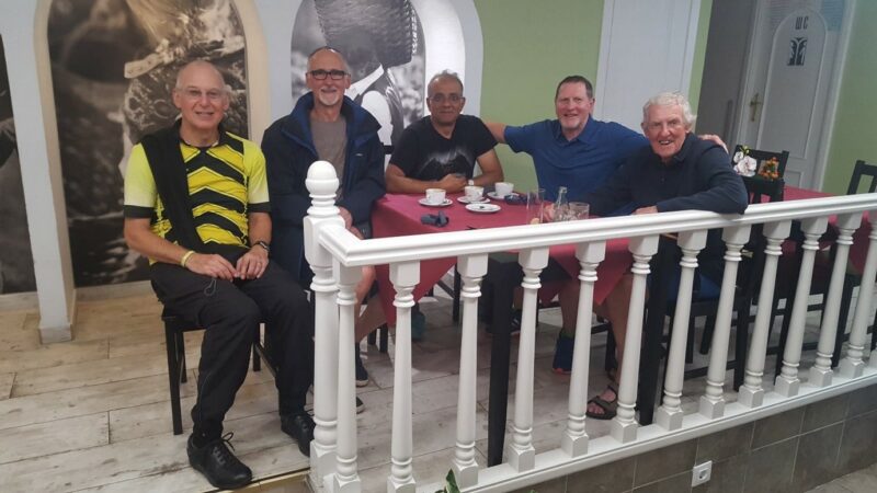 Having achieved our objective of the climb up to the lakes of Covadonga, we spent the next few days enjoying the some of the tourist spots in that part of northern Spain as we headed back down to the coast with it’s scenic, rocky bays and sandy beaches. But we had one last, pre-arranged fixture – a meet up with our current Anerley Club Captain – Peter Roberts.