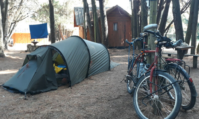We began talking to one young lady whose bike looked like it was about to crumble under the weight of luggage. She had very worn panniers held together with bungies and apart from a tent, she had a guitar, laptop case, huge camera slung over her shoulder and large pile of cardboard. This, she explained, was her sleeping mat. She had been in Argentina for about a year and wanted to cycle to the far South – Ushuaia – to pick up a sailing boat that had hired her to film their voyage. Her dad had flown out to cycle with her for a couple of weeks and not being a cyclist – had bought his bike for very little money at Halfords!