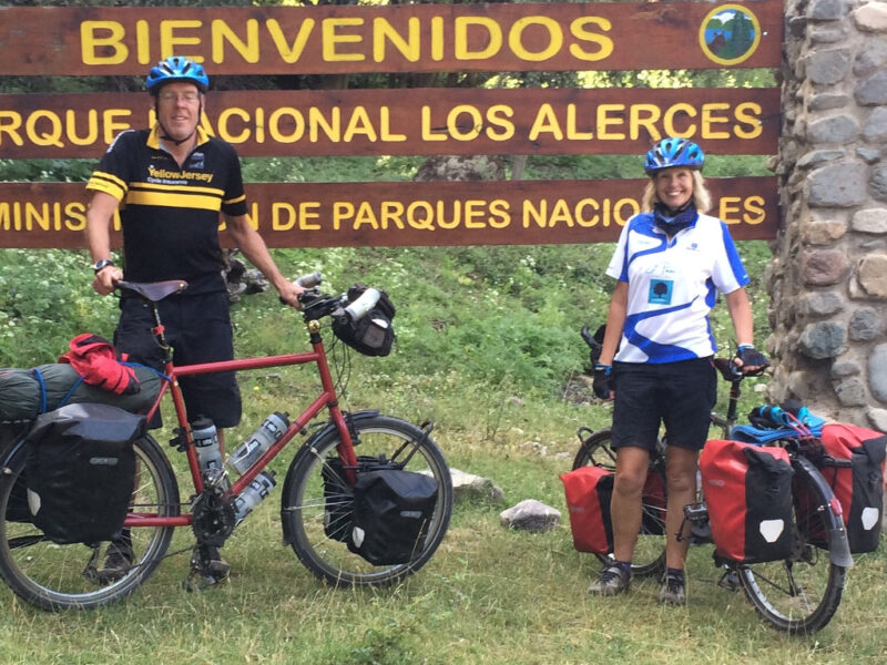 The following day our speed reflected the difficulty of riding on a gravel road. Every time a car passed we were engulfed in a cloud of dust and I became good at managing to pull my buff up over my mouth and nose whilst managing to keep upright. The road led to the Chile border. After formalities we arrived, exhausted, into Futalaufquen where we were to spend another rest day.
