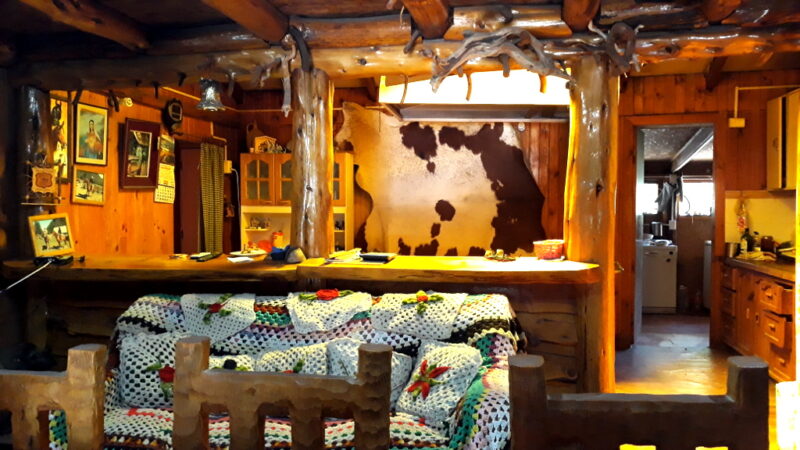 During the ride we saw a sign for a café – we had learnt not to take these signs too seriously as there was often no café or they were closed. This time it was a beautiful wooden farmhouse and after knocking on the door we were shown into a typical Chilean house where we were given a tin of Nescafe, a tea bag, milk powder and a flask of hot water. Perfect! I always have trouble asking for milk to have with my tea and often end up with a tea bag floating in hot milk.