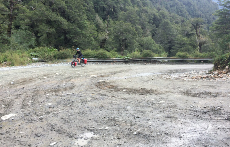 The following few days we had rain. On one mountain pass it was really raining hard and we were completely frozen. Our hands and feet were numb and we were seen doing jumping jacks by the roadside to try and keep warm. On one such day we arrived at a road junction at 1.15pm. We were stopped and told we couldn’t pass due to roadworks until 5pm as they were dynamiting the cliffs!