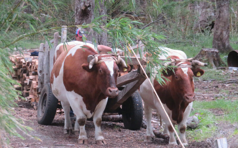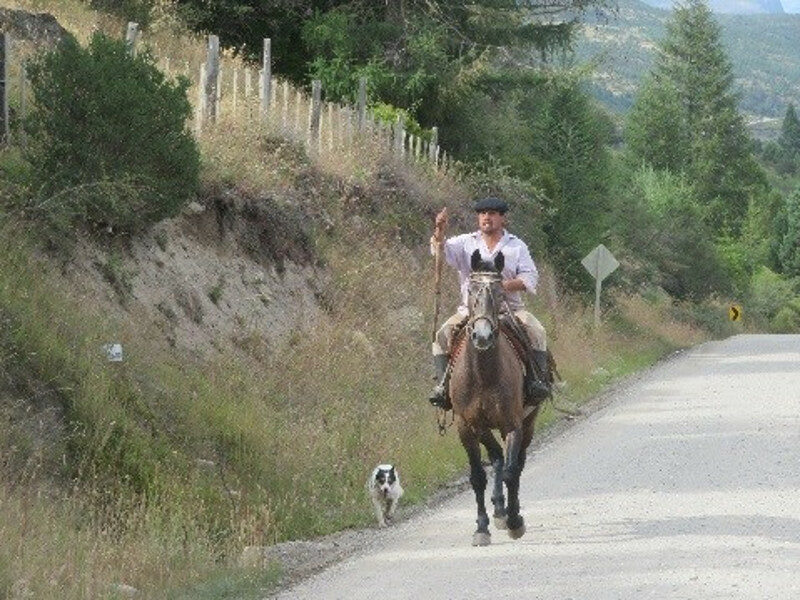 The following couple of days passed without incident through lovely scenery. Although Chile towns can be quite modern there are still sights from the past such as oxen pulling carts of wood and gauchos(ranchers) on horses wearing berets, helping their dogs round up the sheep.