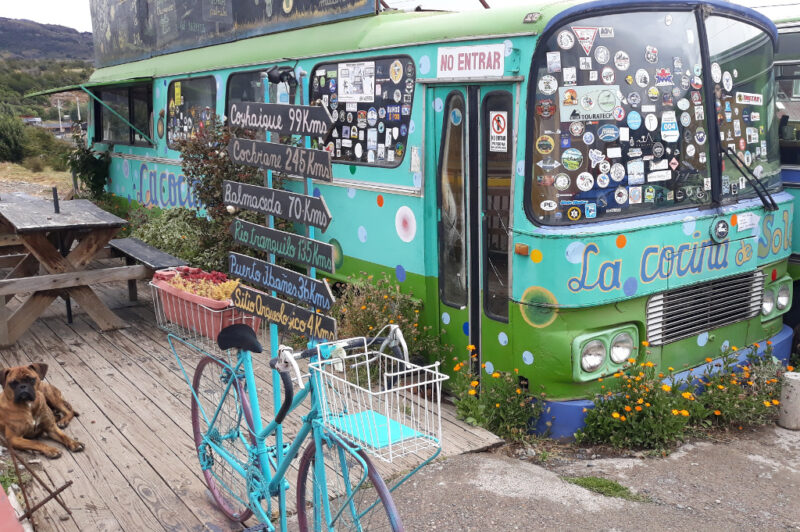 When I say frontier town I mean it was virtually dead most of the time. There were a few shops and café’s that seemed to open when they felt like it and never until the afternoon. We did find one nice place that was warm and sold great food but we mainly cooked in the campsite. It was here we met Hannah – a girl from Hackney who was travelling alone and had been in South America for over a year (she is still stuck in Argentina – she didn’t managed to get out in time when the borders closed because of the Corona Virus). She told us she’d bought a bag of lentils, beans and various other vegan foods that would be too much for her to eat alone. She asked us if we would share her casserole but didn’t want any help cooking it. This was great for us but I felt guilty that she wanted nothing in return. That night we had a feast.