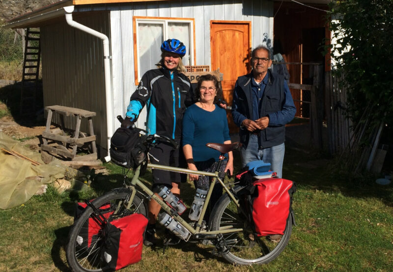 Sunshine! Yes the rain had finally stopped and we woke to a very cold but gloriously sunny day. Cycling along quite roads with the scenery becoming more and more impressive we were feeling buoyant. It was around lunchtime when we passed a car with a flat tyre and a group of 4 standing looking at it. We stopped and asked if there was anything we could do. The Austrian couple explained that the car had already had one puncture earlier in the day so this punctured tyre was the spare! The van behind (a random extremely kind Chilean couple) had been following the car and every few miles would stop and re-inflate the tyre using an electric pump! Unfortunately the pump had given up the ghost and that was when we arrived.