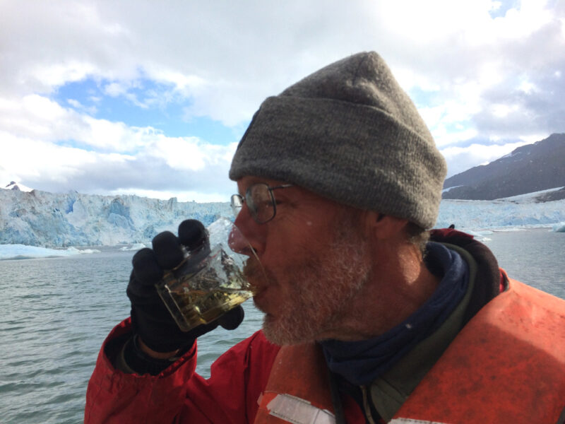 The driver of the boat had filled the engine with oil whilst we were there and as we set off on the return journey we were all given a glass of whisky with Glacier Ice. It turned out that it was the driver’s birthday and he was given a tumbler or three filled to the top!!