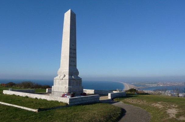 At the top of the middle climb, being the highest point on the Isle of Portland, on one side of the main road is the Portland Cenotaph. It was placed there with a view over Portland Harbour, Weymouth and the coast to the east, to commemorate the 237 local men who died in the Great War. Another 108 names were added for those who died in the Second World War. A significant number for the relatively small population on this Isle.