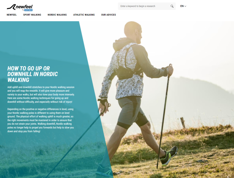 There are techniques to practise and master to get the full benefit from Nordic Walking. One web page to have a look at is https://www.newfeel.co.uk/how-to-go-up-or-downhill-in-nordic-walking , whose poles are stocked by Decathlon!