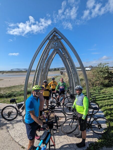 Five miles on and we crossed a bridge over the River Adur and spotted an interesting structure that turned out to be a memorial to the 11 people killed when a plane crashed onto the A27 during the 2015 Shoreham Airshow. Eleven steel arches reminiscent of a boat hull stand on a circular marble mosaic. Each arch represents one of the people killed.