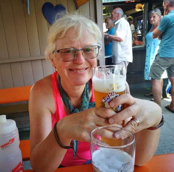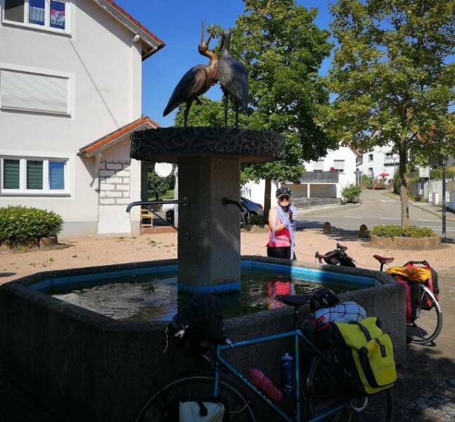 From Donaueschingen there were some very good signposted cycle routes over the next few days. It is set-up well for electric bicycles with charging stations and cafes. We generally had good weather and we got into the cycle camping routine of overnight oats for breakfast. Travel for a coffee and second breakfast stop, often picking up something for lunch that we could have on the way. Stopping again for afternoon drink and cake, maybe an ice cream, or particularly finding the non-alcoholic Weissbier a particularly thirst-quenching drink.