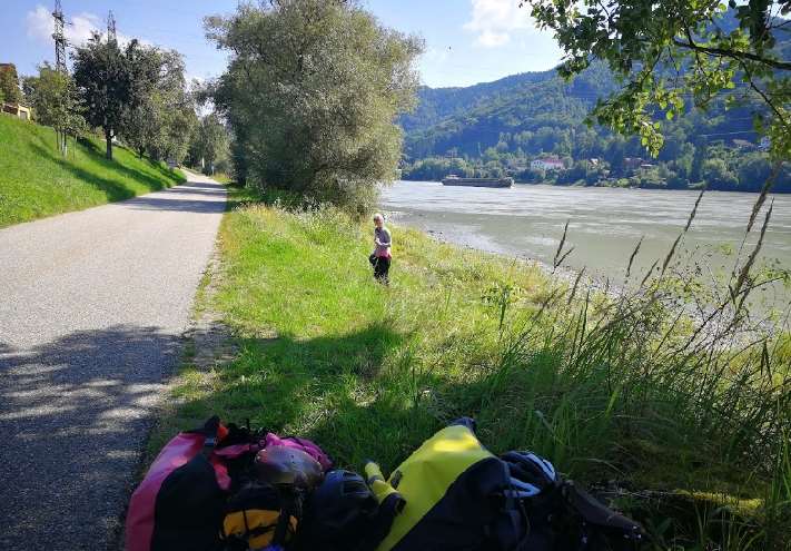 Out of Linz there were another three days cycling to Vienna. An overnight thunderstorm had cleared the air a bit and we were out on another perfectly paved track – rollerblading seems very popular on a lot of these trails. We also had another section of gorge where the Danube goes through a steep sided valley with only minor roads either side and we camped at a quiet campsite ai:ached to a guesthouse.