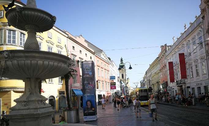 bikes. A great afternoon in Linz – old town centre with some good shopping; a Biergarten where we decided to stay longer and have some dinner; and a free music performance in the middle of town on the way back to the hotel.