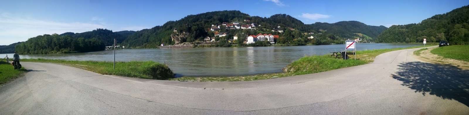 Nine consecutive nights camping at various campsites – cost of campsites bore little relation to quality. Straubing was a lovely municipal site with a big mosquito issue – beer festival in town, but we only went in for a meal; the following night we had a cheap site at a canoe club with a vending machine selling cheap beer just at Vilshofen; then a gorgeous even hotter day – entering Austria, and through a steep sided section of the gorge using a small ferry to cross the river was a bit of a highlight before camping at Kaiserau.