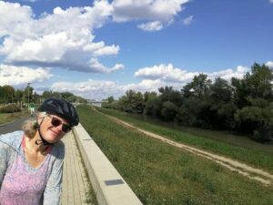 Some difficult and busy road, a ferry that was per our route had been closed for 6 months so we had to stay on the left bank, but once we got off the main road some nice cycle routes; a café for lunch, and a stop at a popular riverside area for an ice cream before getng to Budapest and the successful completion of our cycle trip.