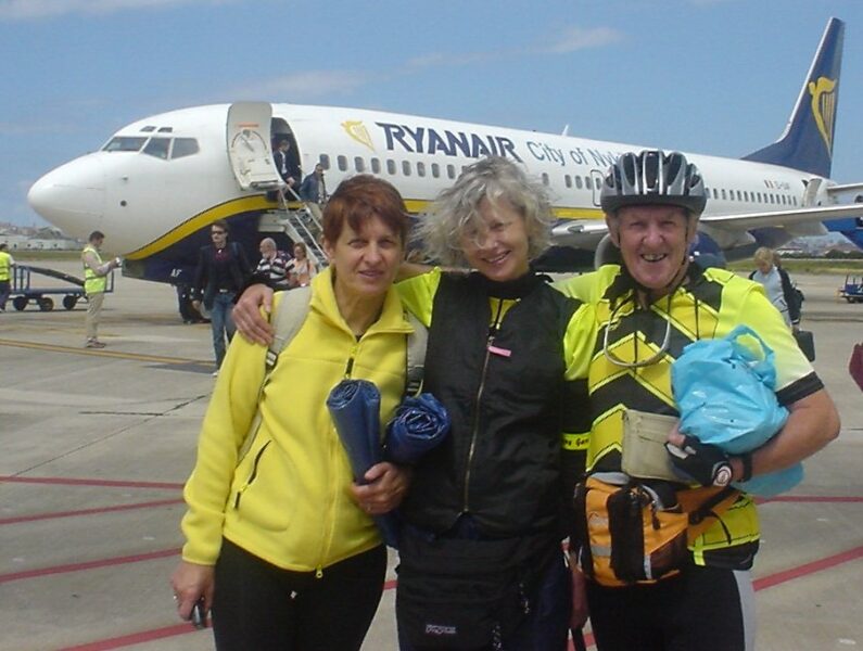 We arrived at Santander in late afternoon with an anticipated, short 25k to an overnight stop at Santillana del Mar. However, departure from the airport was delayed by a very large thorn, imported by Ewa. Then, following a much welcome stop for cerveza and tortilla, Ewa managed it again. And again. Two more punctures. So Ewa became quite an expert puncture fixer!