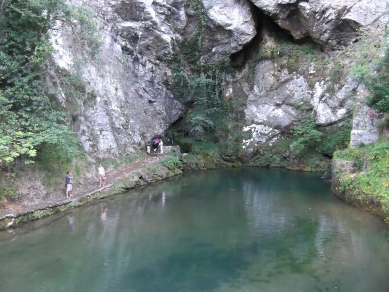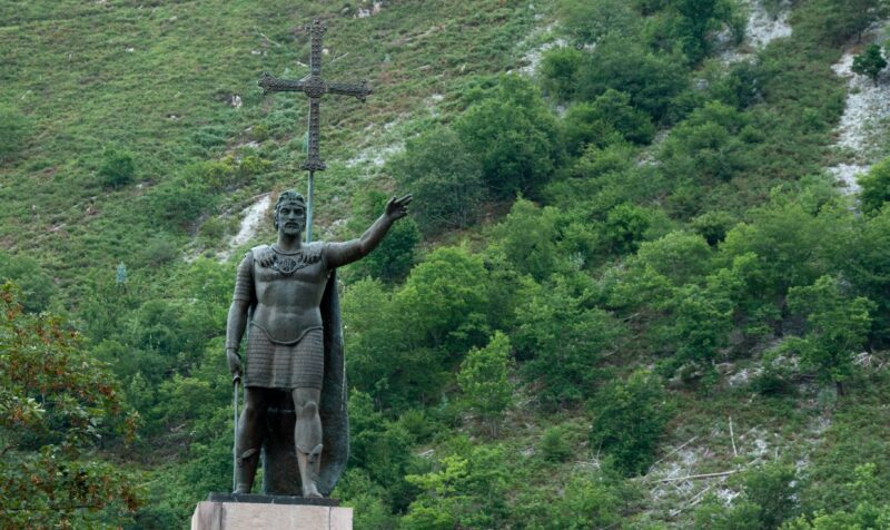 And the Covadonga bit? The all conquering Moors were pursuing a small band of remaining Christian Spaniards who were fleeing into the high mountains to hide. Finding a cave, exhausted they stayed over night to rest. The leader of this demoralised band, Pelayo, was woken by a vision of the Virgin Mary. “Fear not” she told him, “Tomorrow I will protect you. Go forth at dawn. and here in the narrow pass, lay ambush on the army of the Moors. You will prevail!” And so they did and slaughtered so many of the God’s enemies that the rest fled in panic. The first victory of the Spaniards over the the all mighty Moors, and so began the Re-Conquest of Spain.