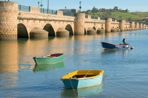 We were making slow progress and behind schedule, with still 55k to the 2nd night’s stop. First a wide river crossing, at San Vicente de la Barquera, in a deep valley (that meant a steep down and a steep up, of which there were many!) But this river crossing was a little bit special due to it’s very famous 28 arched stone bridge. It is claimed to have been built 2,000 years ago by the Romans who ruled here in those old days. However, it is not really quite as old as that, having been built in the 16th Century by a Catholic monarch after the Moors were sent packing from Spain. This very old port was important during the medieval times when the Spanish were exploring in the Americas. It was from this port that the seamen discovered a newly found land, which we know as New Foundland! But the bridge in all its glory . . . .