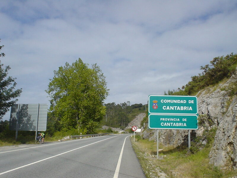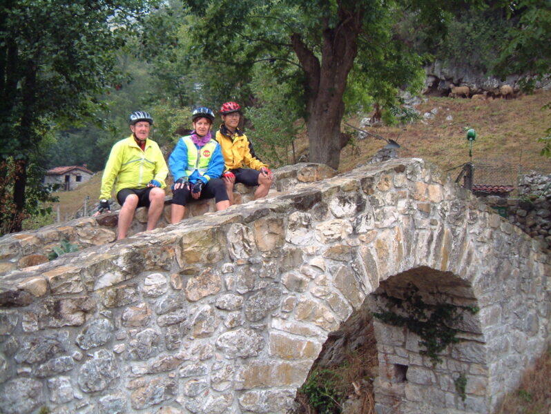 We stopped here for our mid-day, or was it afternoon, meal before setting off on the climb out of the river valley, following the coast road to the next river, The Rio Deva. This we followed inland, a long, steep, haul up the valley until we eventually came to a wide, modern bridge, over which we crossed into the Principality of Asturias. Ahead of us we could now see the Picos de Europa, the stunning Peaks of Europe. So we had made it! But I cannot say enough in praise of Irena’s determination, for our Polish doctor was not a cyclist like the rest of us. But she certainly is now!
