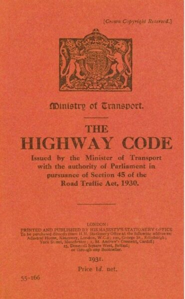 Driving licences (to identify vehicle and their drivers) were introduced in 1903. It was not until 1931, by which time there were 2.3 million motor vehicles on the road and over 7,000 road deaths each year, that a Highway Code was introduced. Even then, it was not until 1935 that Driving Tests became mandatory for all.