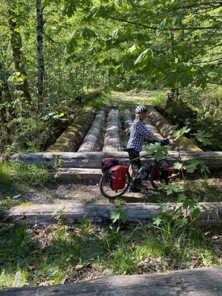 We were on a cycle track to start with and it crossed huge wooden Trestle railway bridges. Some