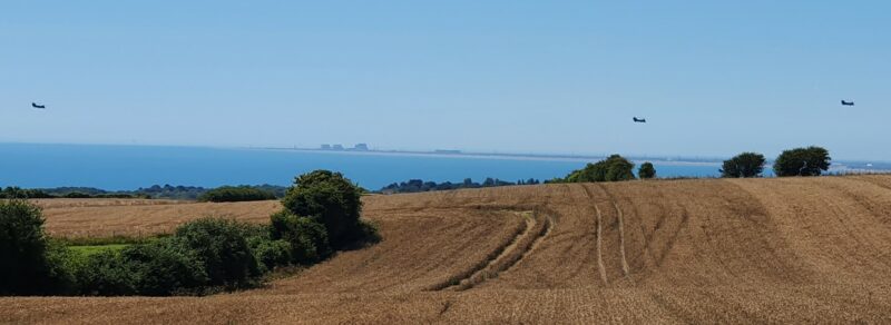 To the naked eye these three specks in the sky, with Dungeness as a back drop, were monster Chinook helicopters.