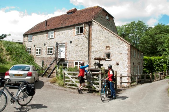 And shortly after crossing the Arun we passed a nursery which had a tea room, although we didn’t stop to try it. Following the Wiggle signs we missed a left turn but were rewarded by a the views over the mill pond and the old Buxton water mill. This was chosen as a Wiggle refuelling stop. Making slow progress due to the very strong head wind we also stopped and refuelled. My calorie intake being half a banana and a hand full of peanuts.